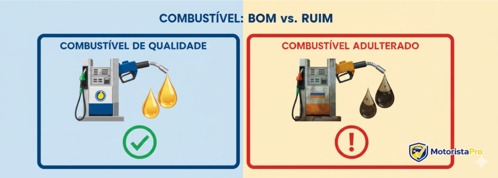 Se os sintomas começaram logo após abastecer em posto diferente, especialmente um desconhecido, o combustível é o principal suspeito.