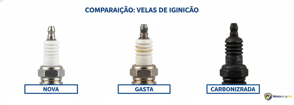 1. Velas gastas (R$ 130-350) – Troque a cada 20 mil km